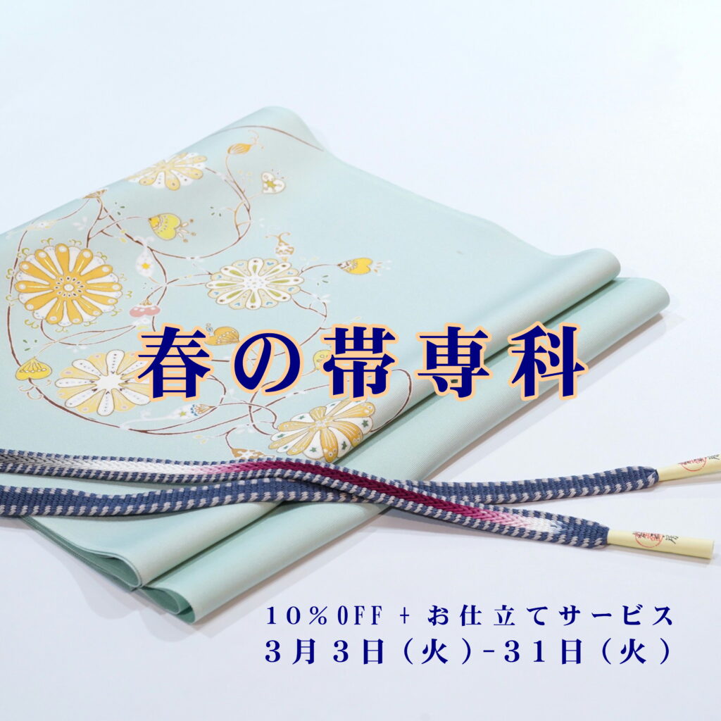3月3日(火)-31日(火) 「春の帯専科~10%OFF+お仕立てサービス~」開催します。