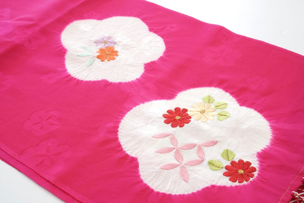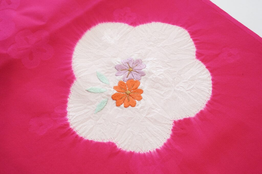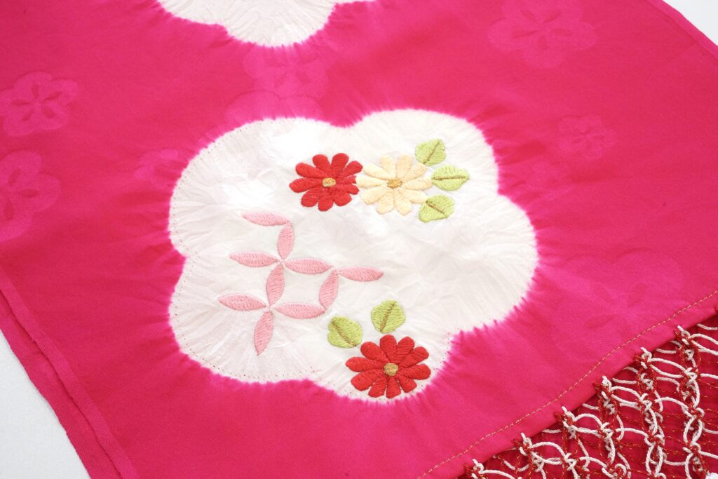 菊や、七宝繋ぎの刺繍も愛らしい雰囲気。