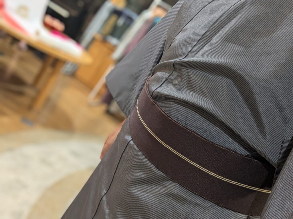 祖父から譲り受けた、焦げ茶色に一本縞が入った角帯を合わせてみました。