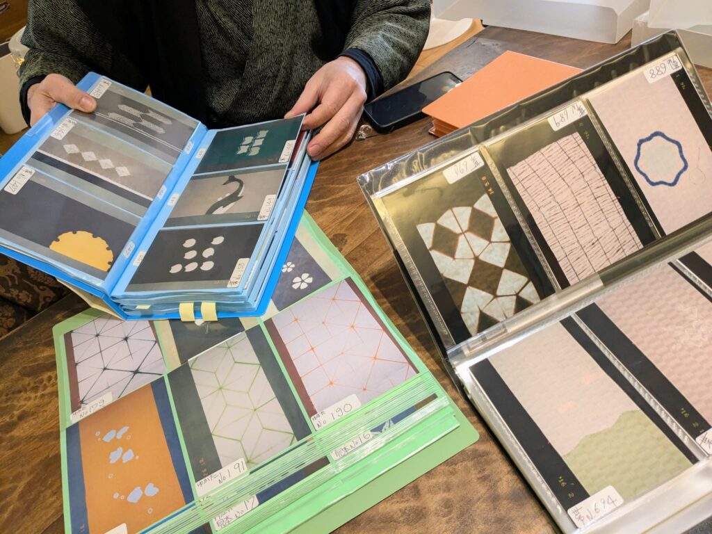 染屋さんが今まで染めてきた色柄の見本帳を基に、
