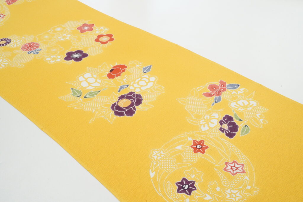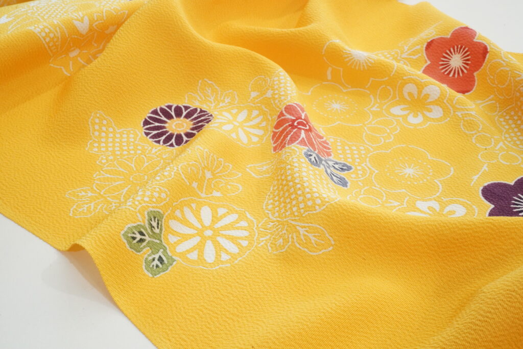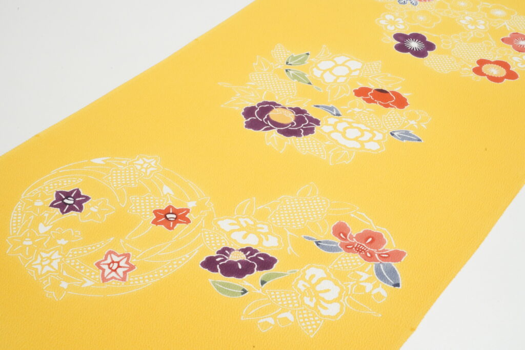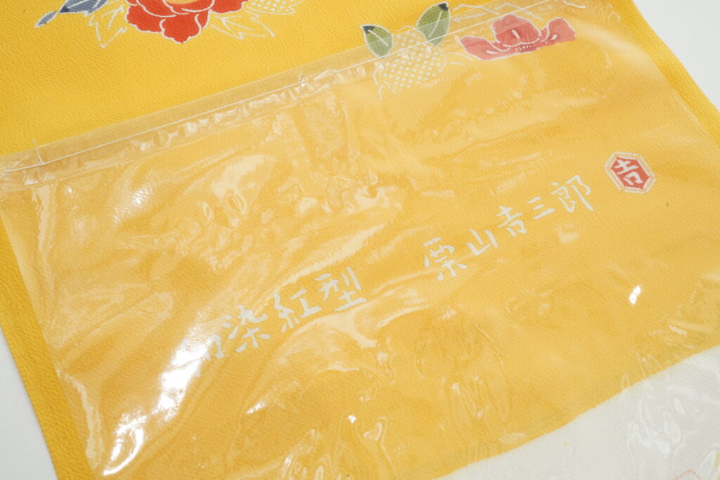 京紅型を作り上げる栗山工房さんが手掛けた愛らしい黄色地の一反に、