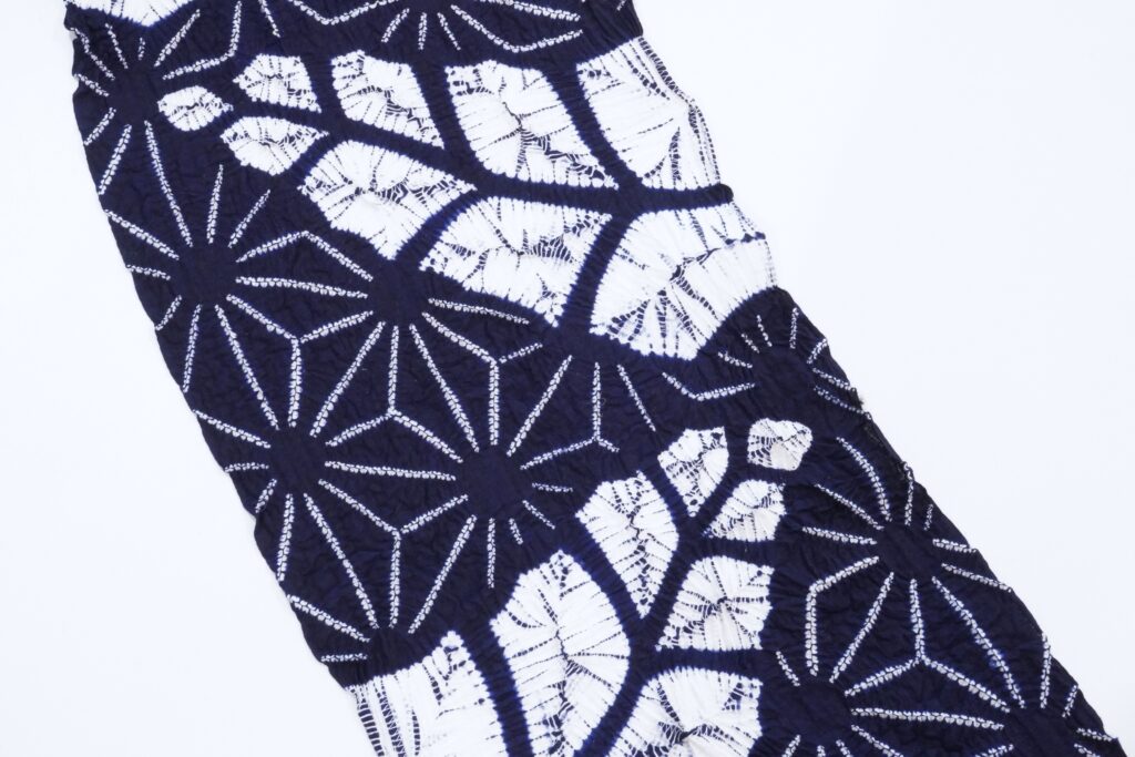 縫い絞りで配された麻の葉模様との組み合わせ。