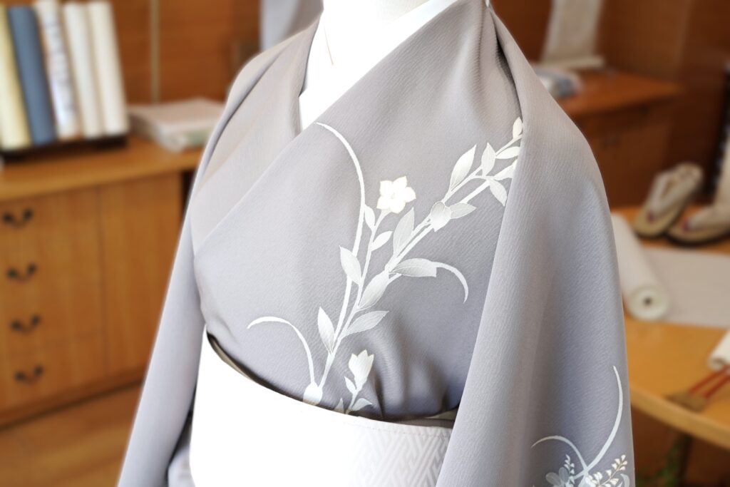 附下「単衣向き・楊柳生地・草花つなぎ・鳩羽鼠色」