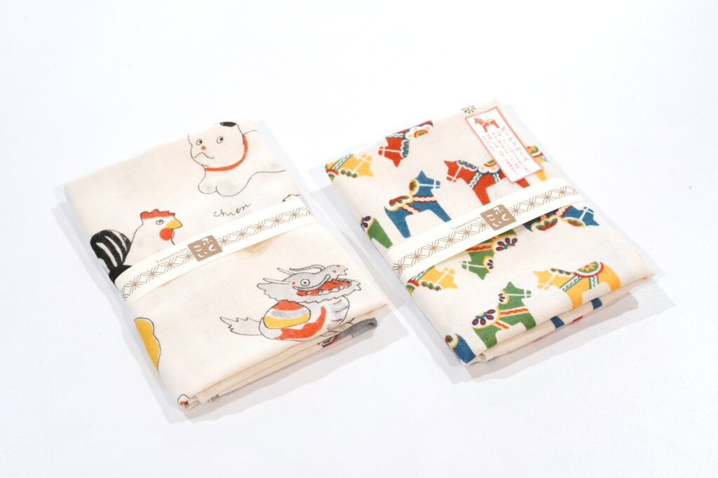 どちらも肌触りがとても良いガーゼ生地を使った手拭いサイズの一枚は、