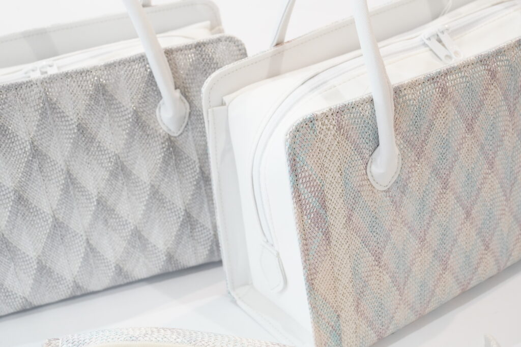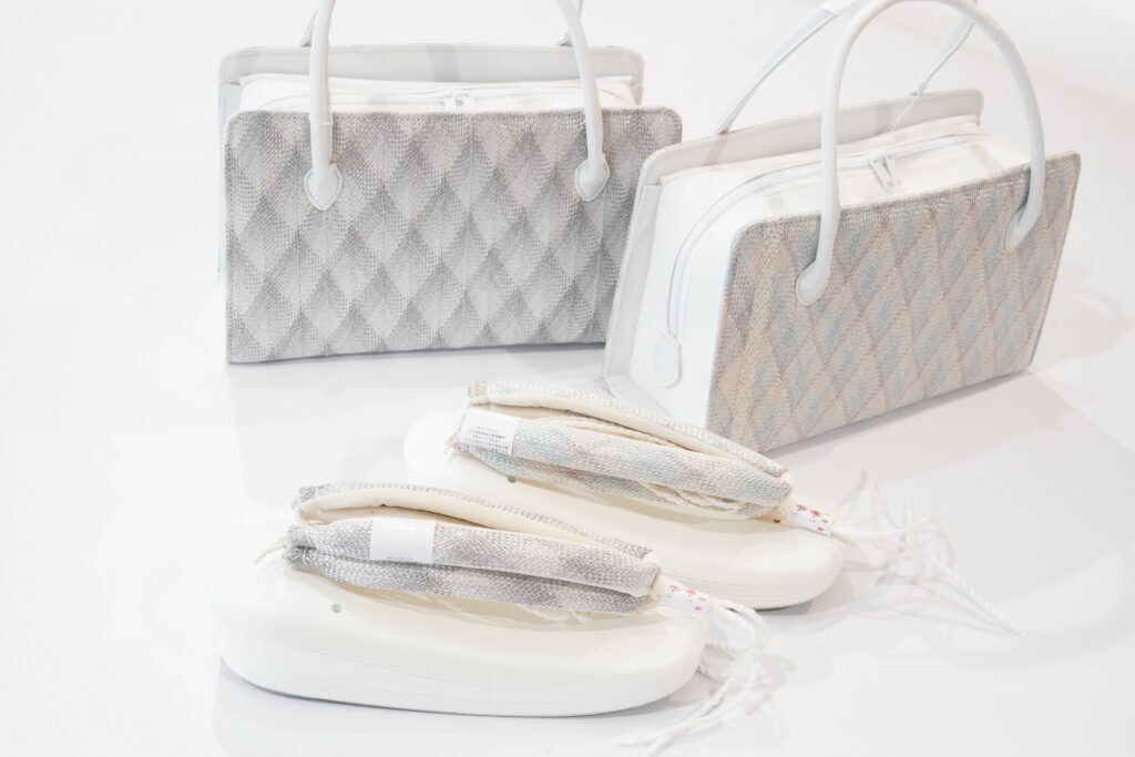 この組紐生地使用の利休バッグと草履のセットは無難ではありつつも、
